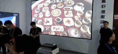 展會現(xiàn)場,視美樂展示了180寸的巨幕投影效果。色彩準(zhǔn)確、明艷;畫面通透、光線感強(qiáng)烈;聚焦清晰、細(xì)節(jié)豐富。