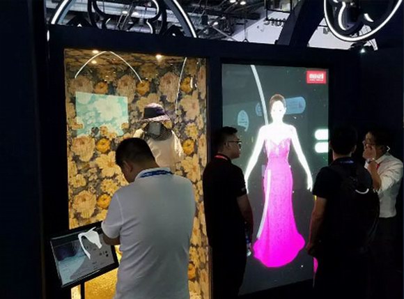 展區(qū)是以智能櫥窗位靈感設(shè)計的時尚櫥窗展項。投影配合電控玻璃將櫥窗功能最大化,既兼?zhèn)鋫鹘y(tǒng)櫥窗的景物展示功能,更讓產(chǎn)品以一種智能化的姿態(tài)展現(xiàn)在顧客眼前。通過連接互聯(lián)網(wǎng),讓實體產(chǎn)品更貼近顧客消費,引導(dǎo)全新櫥窗購物理念。現(xiàn)場看到觀眾積極參與,紛紛選擇男性或女性服飾,而選擇好服飾后,關(guān)閉投影屏幕原來后方空間就是一個真實的衣柜,虛實結(jié)合的巧妙構(gòu)思頗具創(chuàng)意。