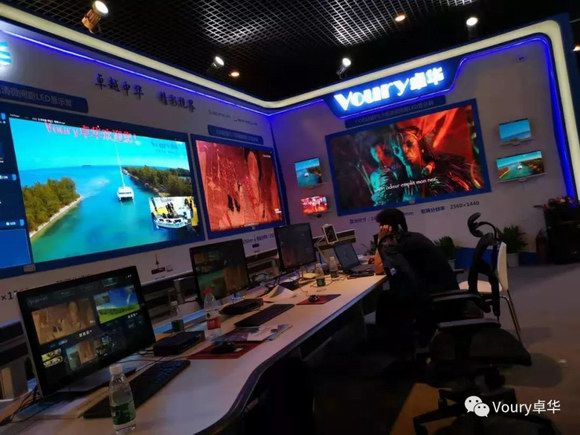 Voury卓華作為業界業界領先的大屏幕顯示及拼接控制整體解決方案提供商,本屆展會主打應用場景現場模擬,現場共展出包括SMD封裝LED顯示屏、COB封裝LED顯示屏等在內的多套拼接大屏幕。Voury卓華有多套顯示屏分別模擬不同應用場景進行展示: