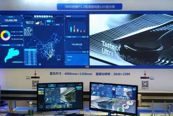 1、SMD封裝P1.2微間距LED拼接屏,整屏分辨率:3840×1080;