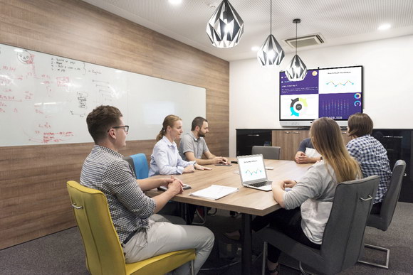 臨近下班,小結會如期舉行,員工們對照早晨Check-in會議內容,考量工作進展。通過newline協同白板功能,可以進行大小屏互動,將文件插入至白板,分享資料,并進行標注等操作。擁有安卓手機的員工可用“文件快傳”功能快速分享文件,只需打開“Hi智會”App掃碼,即可將文件秒傳至newline;另外,如有團隊成員出差,還可通過“Hi智會”加入會議共享屏幕,不錯失重要訊息。