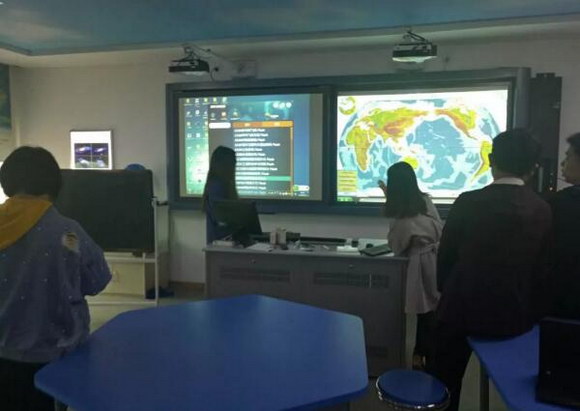 教室中配備了數字立體地形、多媒體球幕投影演示儀、語音立體地形圖等教學設備。這些數字化工具的出現,讓學生從一個知識內容的消費者向創造者轉變,學生不再是被動的學習,而是主動地創造教育產品,成為教育資源積極的生產者和傳播者。