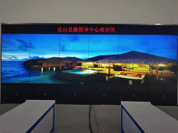 目前,在康佳壹視界的助力下,新疆皮山縣廣播電視臺融媒體中心正式啟用,經過專業的施工安裝,用于中心控制室的顯示大屏已經竣工。其采用的是康佳壹視界 55寸1.7mm液晶拼接屏,3行6列,總面積達15.3m2。屏幕上方顯示的“皮山縣融媒體中心歡迎您”11個大字,標志著該電視臺完成由傳統電視臺向“融合多媒體業務電視網”的全新蛻變。