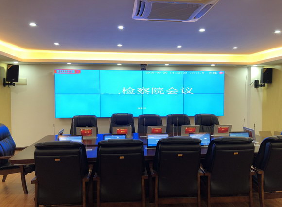為實現會議信息化,提高會議效率和節約資源,檢察院會議室需要打造一套智能高效無紙化會議室用于各類工作會議、主題報告、專題黨課、視頻會議等的開展。