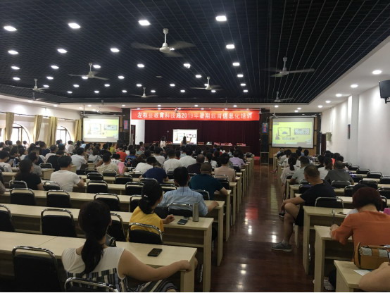 為貫徹落實《教育信息化十年發展規劃(2011-2020年)》要求,響應國家《教育信息化2.0行動計劃》部署精神,推進信息技術與教育教學全面深度融合,提升教師應用現代教育技術水平, 2019年7月28日,希沃應左權縣教育局邀請,開展了教師信息化教學能力交流及培訓活動。全縣200余位校長及骨干老師相聚在左權縣宏遠培訓中心,共同交流學習信息化教學方法與技巧。