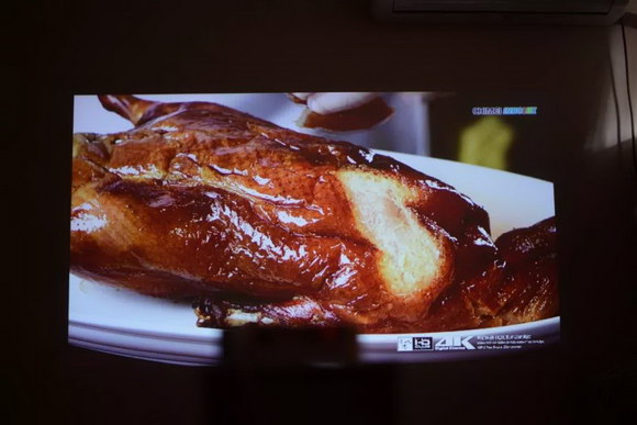 上面我說過這款投影儀是支持4K播放的,大家看到這兩只烤鴨有沒有熟悉的感覺?這個片源就是經(jīng)常出現(xiàn)在各大賣場里面,給電視播放進行宣傳的烤鴨視頻,清晰度采用的是高清4K,播放出來的效果大家可以直觀的感受一下。