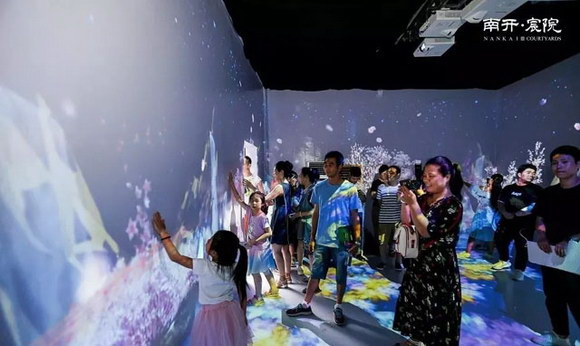 TMTT華創(chuàng)全息為此次天津融創(chuàng)南開宸院助力全息《追光·拾光》光影展,團隊從內(nèi)容視覺效果設計,投影設備