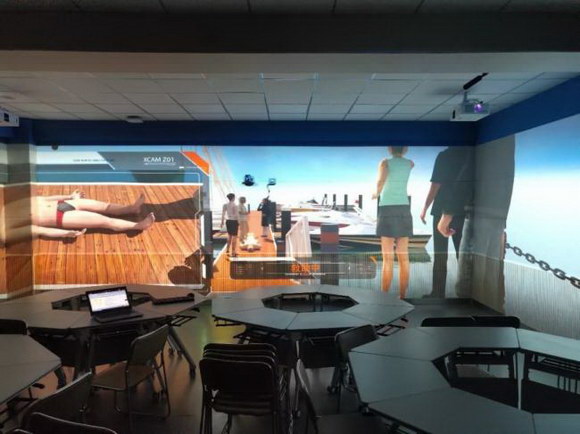 該項目是一個職業學校醫學展覽的項目,通過4臺投影機三折墻面拼接加融合變成沉浸式的展廳。配合客戶的軟件實現醫學教學的動態畫面。滿足了校方對投影畫面的嚴格要求。作為展覽展示,多媒體的豐富展示需求極為重要。為學生和使用者帶來震撼的視覺沖擊和沉浸式體驗,非常適合教學實驗中心這種大場景的主題畫面展示。