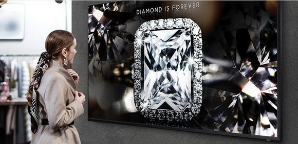 零售行業(yè)中有個“第一眼效應”,即第一眼就決定了消費者是否想要繼續(xù)了解你,針對高端零售領域,在三星QLED 8K標牌的屏幕上,8K分辨率將呈現(xiàn)肉眼無法分辨單個像素的細膩顯示效果,更好地展現(xiàn)出高端產(chǎn)品的高品質工藝,以及奢侈品的每一處細節(jié)。