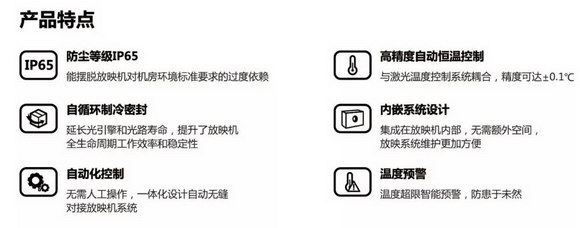 漢威激光為了滿足國內影院客戶不同機房環境條件,在以前傳統水冷散熱的產品形態上,推出了最新的風冷,TEC制冷的散熱方案,指導影院客戶科學地選擇最合適自己每一個影廳最佳散熱方式。此外,我們也為客戶帶來了LRGB-X全系列的光源解決方案——LRGB-X內置/外置、LRGB-X-One等產品以及Christie CP2306/08/10-RGB/C和NEC900的Clean-Box解決方案