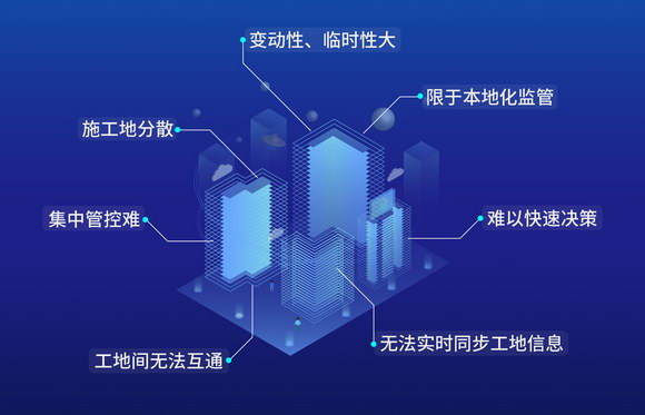 建筑行業的管理痛點:各建筑施工地信號分散,無法集中管理,消耗人力監管資源;各施工地之間,無法實現信息互聯互通;建筑施工地址具有臨時性、變動大等特性。