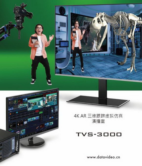 Datavideo TVS-3000 4K AR三維跟蹤虛擬仿真演播室是一套帶跟蹤的真三維虛擬及圖文制作系統解決方案,而且利用日益強大的電腦運算處理能力,將時下最前沿的AR技術也融入到虛擬演播室中。TVS-3000 將傳統的采集、錄制、虛擬演播、視頻特效、圖文字幕、推流錄制等系統構成的繁雜的制作流程,統一到一套系統中,為您帶來了特有的交互性。簡化了對操作、設備、空間、素材的要求,憑借簡單的原始媒體信號和直觀的操作,便能打造適合多種應用情景,具有專業制作效果的現場直播或錄播節目。