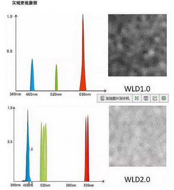和2.0比較,3.0方案會在繼承2.0技術(shù)框架的基礎(chǔ)上,進(jìn)一步改良激光光源的選擇和白光耦合技術(shù)。在散斑抑制和色域指標(biāo)上有嶄新的突破。據(jù)消息稱,WLD3.0的散斑抑制渴望接近媲美傳統(tǒng)汞燈光源的水平。而在色域指標(biāo)上,更為寬廣的紅色、綠色,乃至于黃色表現(xiàn),將讓頂級投影機和電影放映效果更上一層樓。