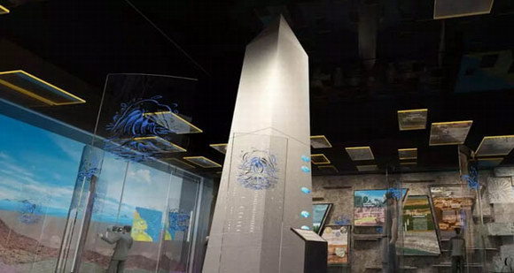 在表現形式上,華凱創意以沉浸式的體驗空間為創新手段。采用圖文立體場景、大型多媒體互動沙盤、景觀藝術復原以及3D影院等多媒體手段從多樣視角深度“看”湘西,序廳實景沙盤、光影互動金釘子方尖碑藝術模型、地球之母互動藝術裝置、紅石之密科普互動裝置等科技與藝術完美融合的展項,集科普性、娛樂性、藝術性于一體,讓游客感受大自然的力量和地球的造化功能。