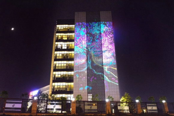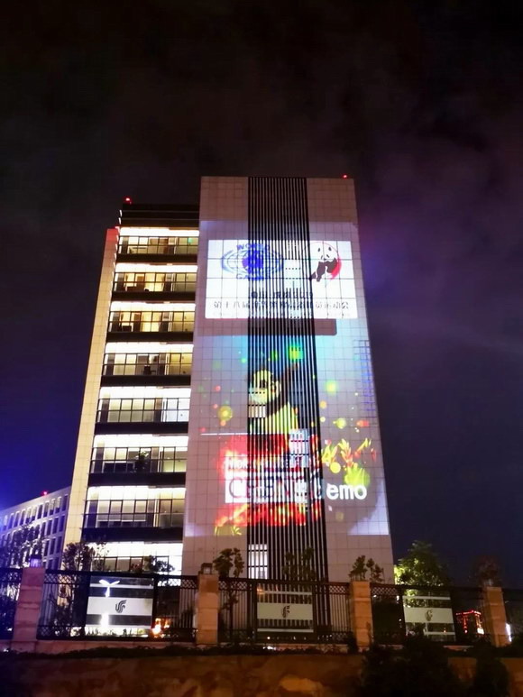 PH3501QL+采用雙色激光光源,可以360°自由角度安裝,而國(guó)航大樓形狀豎長(zhǎng), PH3501QL+正好以豎投的方式投射覆蓋樓體;國(guó)航大樓投射區(qū)域高30米,面積大,40000流明的超高亮度單臺(tái)即可完成建筑投影,減少了多臺(tái)投影疊加或融合可能產(chǎn)生的不必要的麻煩。