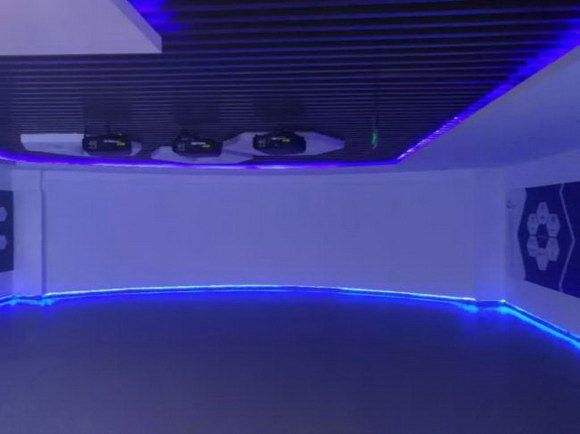 高清畫面,3臺主流投影機被吊裝于展廳頂部,內置多通道融合系統,配合先進的圖形處理、畫面渲染