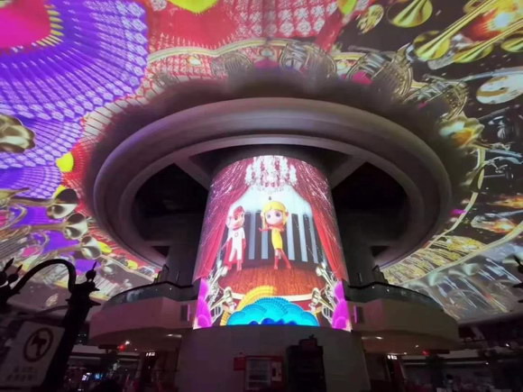 2019年8月,世界最大的穹頂投影秀「聚·上!乖跂|方明珠電視塔零米大廳重磅上演!斥資千萬打造的巨幕穹頂投影,面積高達2500平方米,投影畫面相當于5塊IMAX屏幕,堪稱史上之最。