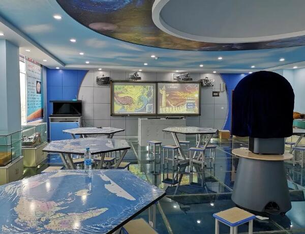 地理專用教室 地理教室由數(shù)字立體地形、數(shù)字模型、天文演示穹頂?shù)冉虒W(xué)設(shè)備組成。天文演示穹頂用于播放各種視頻文件,幫助課程導(dǎo)入;數(shù)字立體地形用于主體教學(xué),將三維地形模型和虛擬數(shù)字影像相結(jié)合,更好地詮釋抽象的地理概念;而數(shù)字模型則作為3D直觀模型,輔助教學(xué)任務(wù)的開展,同時(shí)讓學(xué)生能夠親自動(dòng)手參與操作。