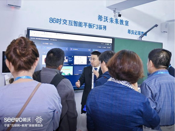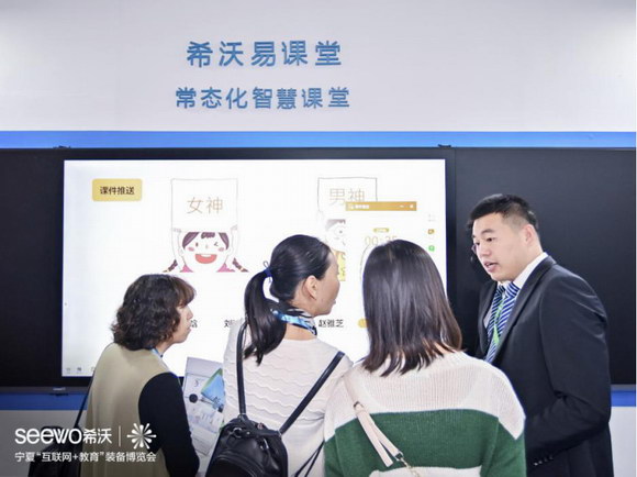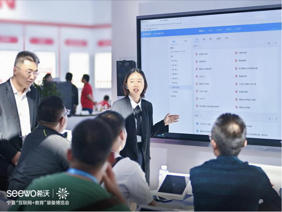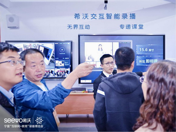 希沃攜三大新品——希沃易課堂、希沃交互智能錄播、希沃云班牌驚艷亮相,憑借創新的功能設計,先進的技術與解決方案,吸引了大批國內外參展人士駐足觀看,獲得各電教館館長、校長、老師的高度關注,并接受了寧夏電視臺的采訪。