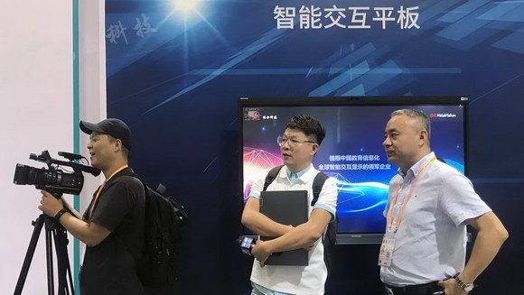 鴻合工作人員接受東南衛(wèi)視對(duì)智能交互黑板的采訪