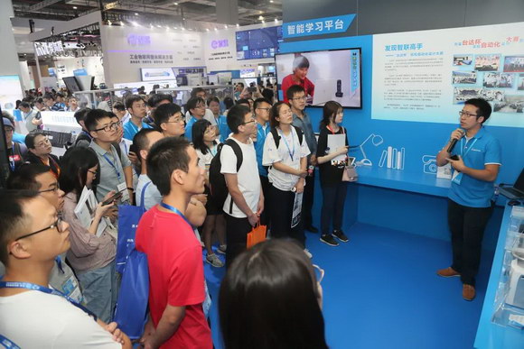 在智能工廠展示區域,以“達智匯”為主題,展示了Vivitek(麗訊)產品——暢享匯NovoTouch在智能學習平臺,社群化學習方式等領域的解決方案