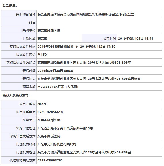 > 東莞市鳳崗醫院東莞市鳳崗醫院視頻監控系統采購項目公開招標公告