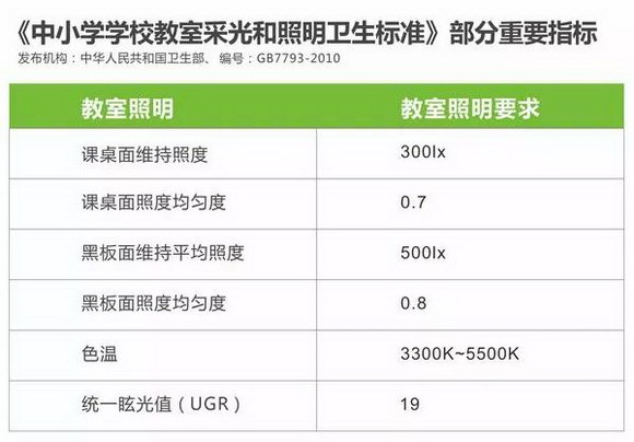 而針對學校教室照明標準要求,《方案》特別要求,嚴格按照普通中小學校、中等職業學校建設標準,落實教室、宿舍、圖書館(閱覽室)等采光和照明要求,使用利于視力健康的照明設備。學校教室照明衛生標準達標率100%。