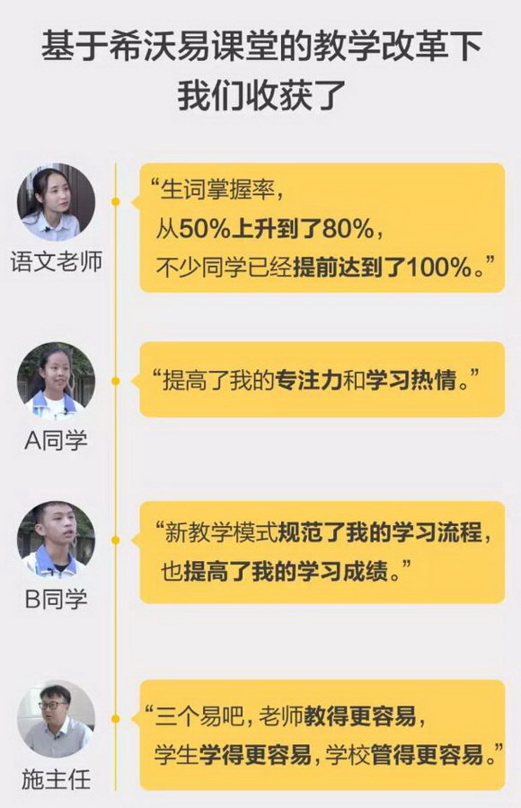 “原來很難了解學生預習情況,只能憑經驗進行備課。現在通過平板給每一個學生推送微課、練習等內容,學生預習后有數據反饋回來,我就知道什么知識該詳細解析 ,或簡略說明。”——馮老師