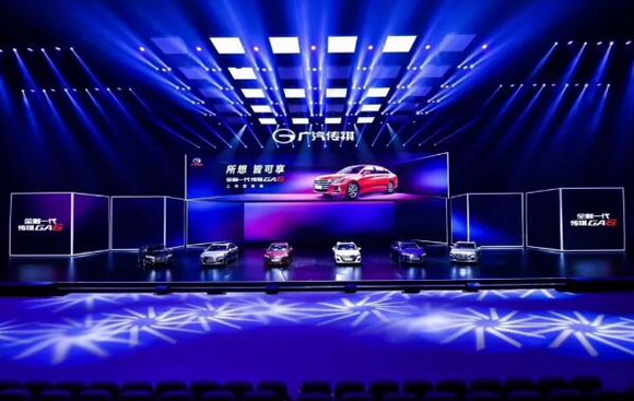 大會背景臺上,LED大屏炫耀的顯示效果,細數著傳祺GA6“A級車價格,B級車享受,C級車豪華”的創新產品升級,演示“光影雕塑3.0”造型語言、L2級自動駕駛輔助功能、雙12.3英寸橫向一體大屏等等嶄新成果。會場兩側的雙”L”型折疊屏幕,則一邊烘托出現場的色彩與光感變化,一邊演示車輛整車應用、環境道路、模擬場景下的良好體驗。