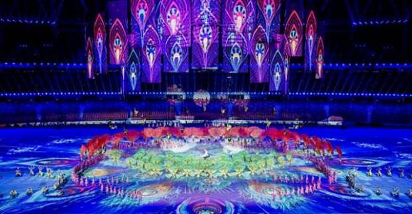2019年9月8日,第十一屆全國少數(shù)民族傳統(tǒng)體育運(yùn)動(dòng)會(huì)開幕式在鄭州奧林匹克體育中心隆重舉行。本屆大會(huì)以“奮進(jìn)新時(shí)代,中原更出彩”為主題,并且是第一次在中部地區(qū)舉辦。開幕式上的民族大聯(lián)歡活動(dòng),由巴可與華奧傳媒強(qiáng)強(qiáng)聯(lián)合,將多姿多彩的少數(shù)民族傳統(tǒng)文化與舞臺(tái)新技術(shù)、新手段深度融合,讓本屆民族運(yùn)動(dòng)會(huì)呈現(xiàn)諸多新奇亮點(diǎn),為全國觀眾打造耳目一新、美輪美奐的視聽盛宴。