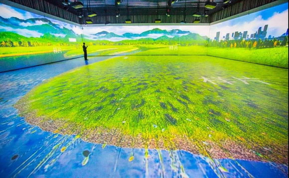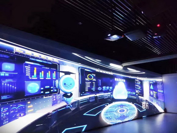 展館以最新的多媒體技術,呈現(xiàn)了集未來、科技、虛擬和現(xiàn)實為一體的“未來世界”,讓系統(tǒng)化、可視化、數據化、智能化變得觸手可及。其中,主要承擔介紹、數字展示等功能的360°沉浸式展廳成為夢想小鎮(zhèn)“科技生態(tài)城市展廳”場館的焦點。
