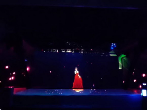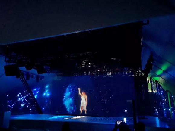 另一個展廳,是由雙臺8000流明NEC液晶激光工程投影機PA803UL+所構成的全息虛擬舞臺,逼真的表演者在舞臺中間,配合夢幻般的背景,營造出虛擬與現(xiàn)實無與倫比的雙重影像世界,讓現(xiàn)場觀眾的視聽感官應接不暇。