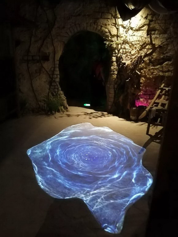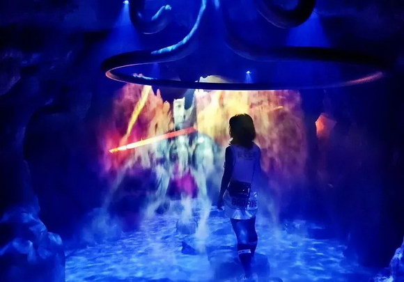 構思巧妙的地面互動投影,當你上一秒還沉浸在大話世界的情懷中時,下一秒地面就有骷髏突然冒出,化身一個大話西游主題的“鬼屋”。在不斷遞進的情緒感受中,把對電影經典IP的浸入式體驗推至最高潮。