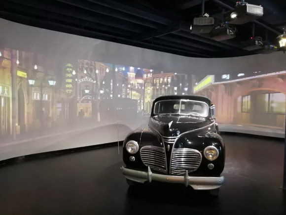 弧形巨幕投影,將舊上海的十里洋場風情帶到了大家面前。影像邊緣融合技術呈現出極具整體感的超大影像畫面,不需其他的道具裝飾,那個年代獨有的繁華與哀愁在空中彌漫,而置于中央的老爺車,就是場中絕對的主角。