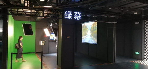 在這里,體驗者可以選一段自己喜歡的電影片段,在綠幕前表演,畫面經過處理替換成其他背景,讓體驗者在了解電影綠幕制作技術的同時,切身感受一下拍電影的美妙。