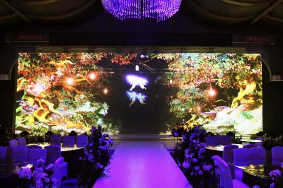 置身宴會(huì)廳中,感受到夜幕降臨,漫天星光閃耀,美麗的蝴蝶在叢林中優(yōu)雅的翩翩起舞,轉(zhuǎn)眼之間,蝴蝶化身成美麗的精靈飛上樹梢... ...一場充滿藝術(shù)和夢幻的視覺盛宴由此開始...
