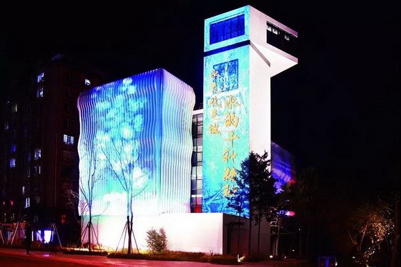 鴻合NEC工程團(tuán)隊(duì)在賦有藝術(shù)氣息的樓體表面,采用2臺NEC PH2601QL+ 4K雙色激光工程投影機(jī),以“水波樓”面為背景,搭配L4K11ZM短焦鏡頭,通過疊加融合的方式為樓體量身打造的投影顯示方案,為游客帶來驚艷的視覺沖擊。