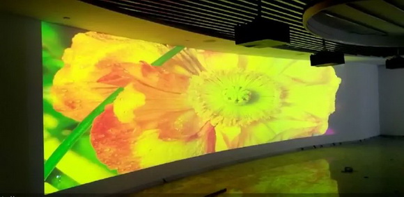 此展項共采用3臺麥克賽爾MMP-D7010UB激光工程投影機和1臺麥克賽爾MMP-D8010UB激光工程投影機打造而成。4臺麥克賽爾激光工程投影機吊裝于展廳頂部,通過多通道融合系統(tǒng),配合麥克賽爾激光工程投影機先進的ACCENTUALIZER圖形處理、畫面渲染技術,4機進行弧幕融合,呈現(xiàn)出極具整體感的超大高清影像畫面,盡展杭州西站樞紐的重要意義。