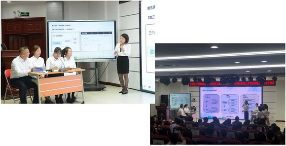 項目簡介: 汽開區第十三小學語文團隊現場展示了基于信息技術支撐下的校本研修。研修采用了翻轉式、線上線下相融合的方式,圍繞如何引領孩子說得精彩的核心問題,破解了教育教學中的實際問題,同步提升了教師的學科專業素養和信息技術應用能力,提供了一個信息技術應用能力提升工程與校本研修相融合的現場案例。其中教師匯報討論應用的軟件為希沃白板5,利用了思維導圖以及板中板等功能實現歸納總結,并應用了希沃授課助手進行同屏互傳,遠程操控。