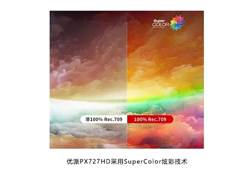 優(yōu)派PX727HD采用SuperColor炫彩技術(shù),經(jīng)過優(yōu)派專業(yè)色彩管理團(tuán)隊(duì)的悉心調(diào)校后,色彩表現(xiàn)力穩(wěn)步提升,影像畫面層次分明,接近電影原片效果,充分還原出影像真實(shí)自然的色彩,在家中就能享受電影院大片效果。