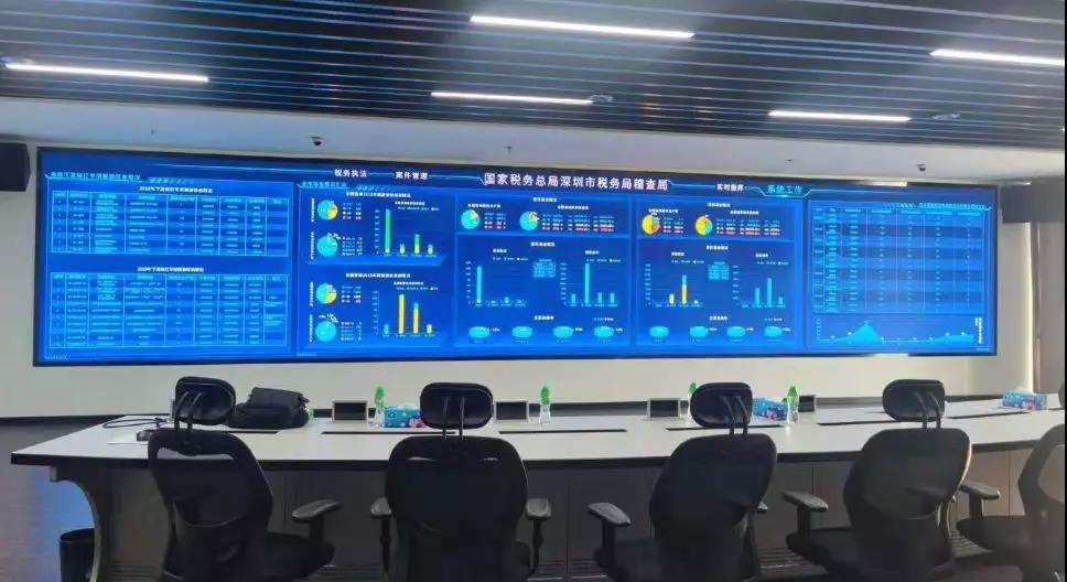 洲明為國家稅務總局深圳市稅務局稽查局配置的洲明小間距1.2系列智慧大屏,可實現稅務稽查、案件管理、執法進度、轄區稅務等業務數據的可視化呈現,通過與上下級單位、政府其他部門構建的互聯互通網絡與資源實時共享,進一步加強稽查局稅務稽查能力,為稅務執法工作開展提供數據支持與決策輔助。