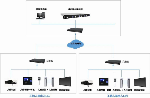 人員實名制管理系統(tǒng)主要由人員通道閘機、人臉識別機和中心管理平臺等設(shè)備組成,主要實現(xiàn)對施工人員的出入權(quán)限管理、員工考勤管理等功能。