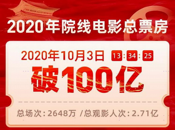 自7月20日國家電影局發布“解凍”通知以來,在觀眾“報復性”的觀影需求下,國內票房一路飄紅。先后在8月25日七夕單日票房達5.23億元,創影院重啟以來的新高,在國慶檔期8天的電影票房還以39.27億元取得歷年國慶檔票房第二的成績。特別在10月3日,國內電影年度總票房突破了100億大關。