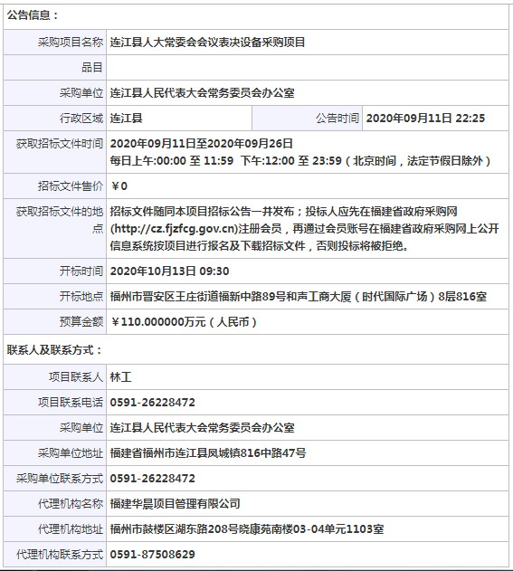 采購項目名稱: 連江縣人大常委會會議表決設(shè)備采購項目