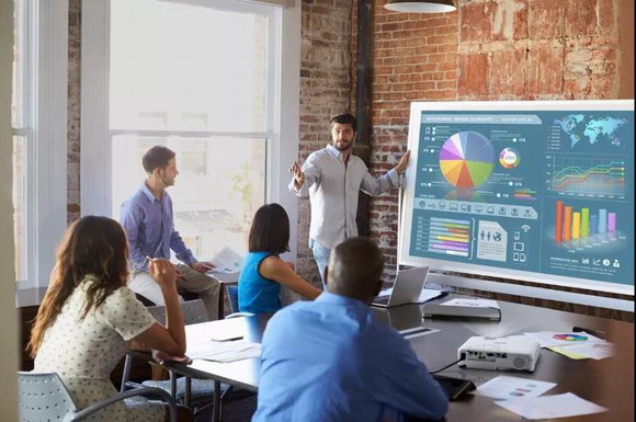 目光鎖定在愛普生商用投影機(jī)投射的屏幕上。