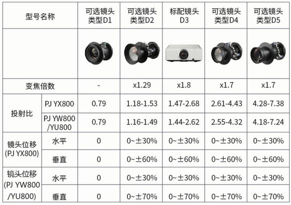 除了標(biāo)配鏡頭理光PJ YX800、PJ YW800和PJ YU800還兼容4款可選鏡頭,從短焦到超長(zhǎng)焦的全焦段覆蓋,支持1.6m-15.1m范圍內(nèi)投射100英寸畫面,讓用戶不再受到投影空間的限制。