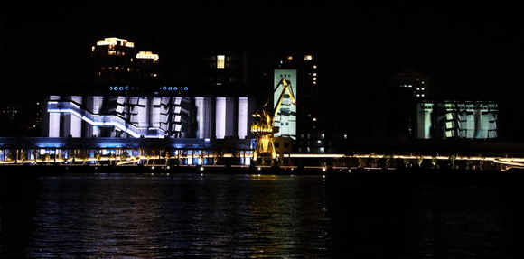 作為歷史車輪滾滾輾過所遺留的痕跡,昔日的糧倉已卸下了守護一方溫飽的重任,但烜赫一時的糧倉并未退出歷史的舞臺。如今的八萬噸筒倉已逐漸褪去工業社會氣息,成功轉型藝術展場,成為光影秀的載體。