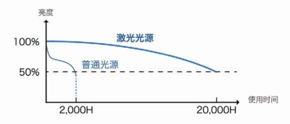 激光光源技術改變了投影產業傳統的競爭版圖,因其高亮度、高色彩還原、低能耗、體積小和長壽命的特點,在各個領域逐漸成為市場主流。激光光源支持7×24小時連續工作,能實現長達20000小時的超長壽命,是普通光源壽命的10倍。