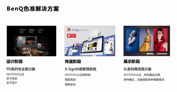 比如明基素來與國際色彩權(quán)威Pantone在顯示色準(zhǔn)上有授權(quán)合作,明基專業(yè)設(shè)計顯示器也擁有Pantone認(rèn)證證書,在研發(fā)多媒體內(nèi)容管理軟件X-Sign時,導(dǎo)入Pantone色庫,方便商家傳遞精準(zhǔn)色彩的營銷內(nèi)容。