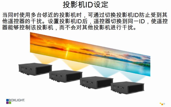 (1)Beverly系列:遙控器SET鍵長按3秒,指示燈亮,然后按對應(yīng)的數(shù)字鍵,比如02,投影機(jī)OSD菜單“投影機(jī)ID”選項也選擇到對應(yīng)的ID,最多支持99組ID設(shè)定;若要急性ID設(shè)定復(fù)位,遙控器SET鍵長按3秒,指示燈亮,然后按00即可。